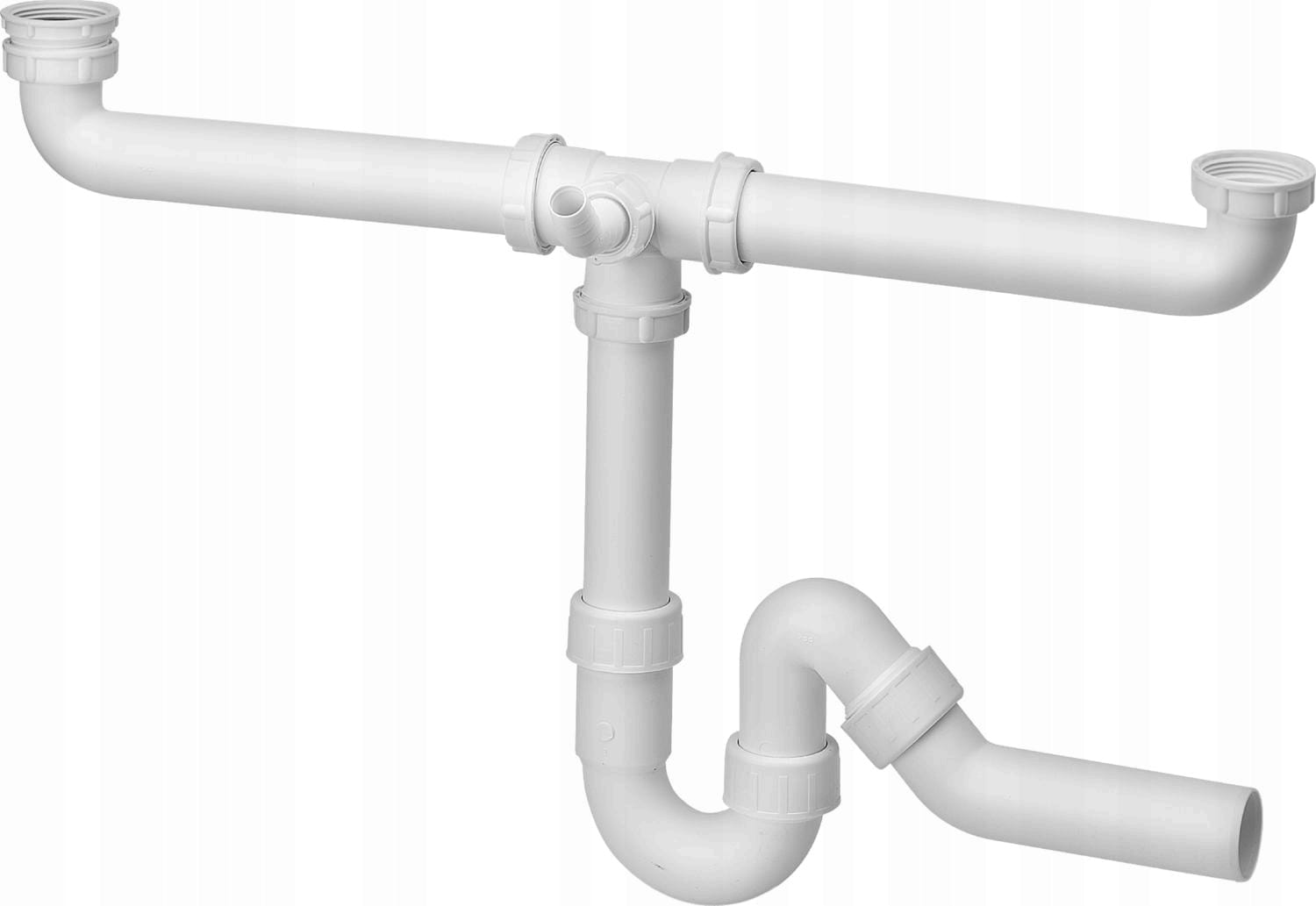Złącze odpływowe do zlewozmywaków podwójnych z syfonem rurowym i podłączeniem do węża