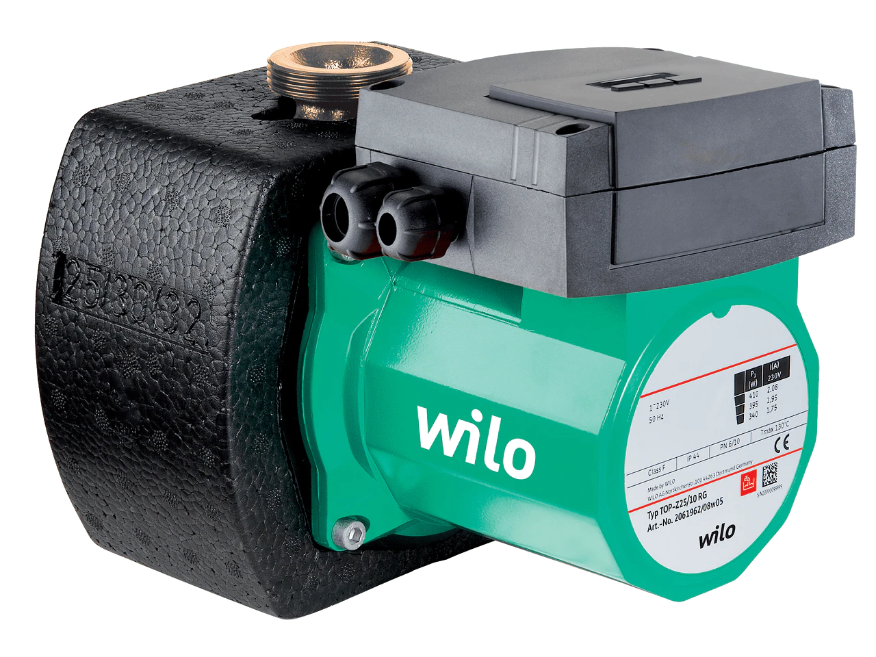 Bezdławnicowa pompa obiegowa z połączeniem gwintowanym lub kołnierzowym, możliwość wyboru stopnia prędkości obrotowej w celu dopasowania wydajności.
