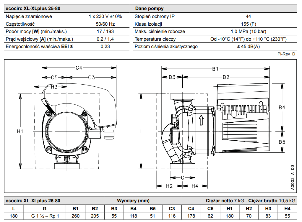 Pompa obiegowa C.O. XYLEM ECOCIRC XL 25-80, 230 PN6/10 E503010AA