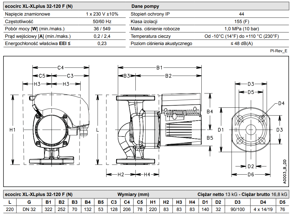 Pompa obiegowa C.O. XYLEM ECOCIRC XL 32-120F, 230 PN6/10 E503070AA