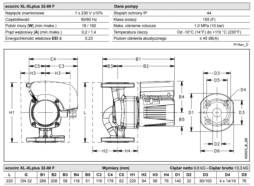 Pompa obiegowa C.O. XYLEM ECOCIRC XL 32-80F, 230 PN6/10 E503050AA