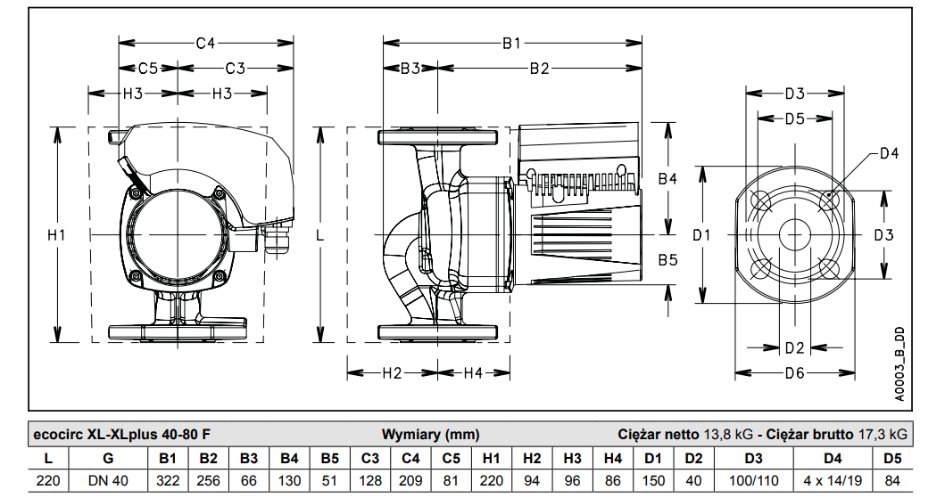 Pompa obiegowa C.O. XYLEM ECOCIRC XL 40-80F, 230 PN6/10 E501130AA