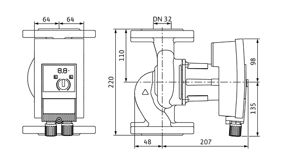 - Przyłącze po stronie tłocznej DN 32