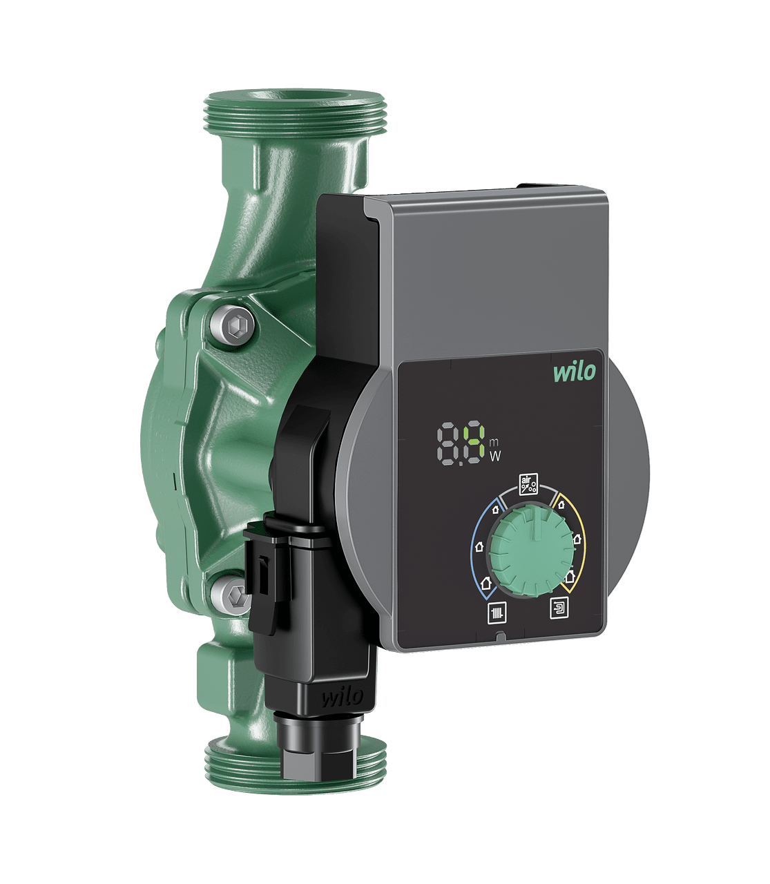 Widoczną cechą nowej generacji pomp Wilo o najwyższej sprawności do zastosowań w urządzeniach ogrzewających i klimatyzacyjnych w zabudowie jednorodzinnej i bliźniaczej jest zielone pokrętło, które wraz z nowymi funkcjami zapewnia maksymalny komfort uruchamiania i konserwacji. Ustawienia fabryczne grzejników lub ogrzewania podłogowego – przedstawione za pomocą piktogramów – oszczędzają czas w trakcie uruchamiania ogrzewania. W przypadku dokładności rzędu 0,1 m możliwe jest dokładne wyregulowanie ustawień.