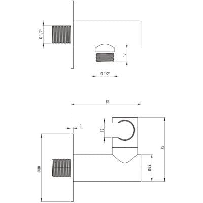 Przyłącze kątowe okrągłe z uchwytem na słuchawkę