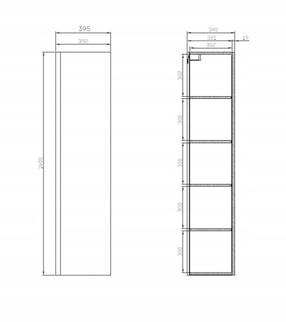 Pojemny słupek na przechowywanie akcesoriów łazienkowych wykończony został białym błyszczącym lakierem. Posiada wygodne frezowane uchwyty. Na wewnętrznej stronie drzwi zamontowane zostało duże, pionowe lustro. Dla komfortu użytkowania drzwi słupka mają zawiasy 165 stopni, które umożliwiają szerokie ich otwieranie. Wyposażone są również w system cichego domykania.