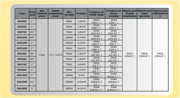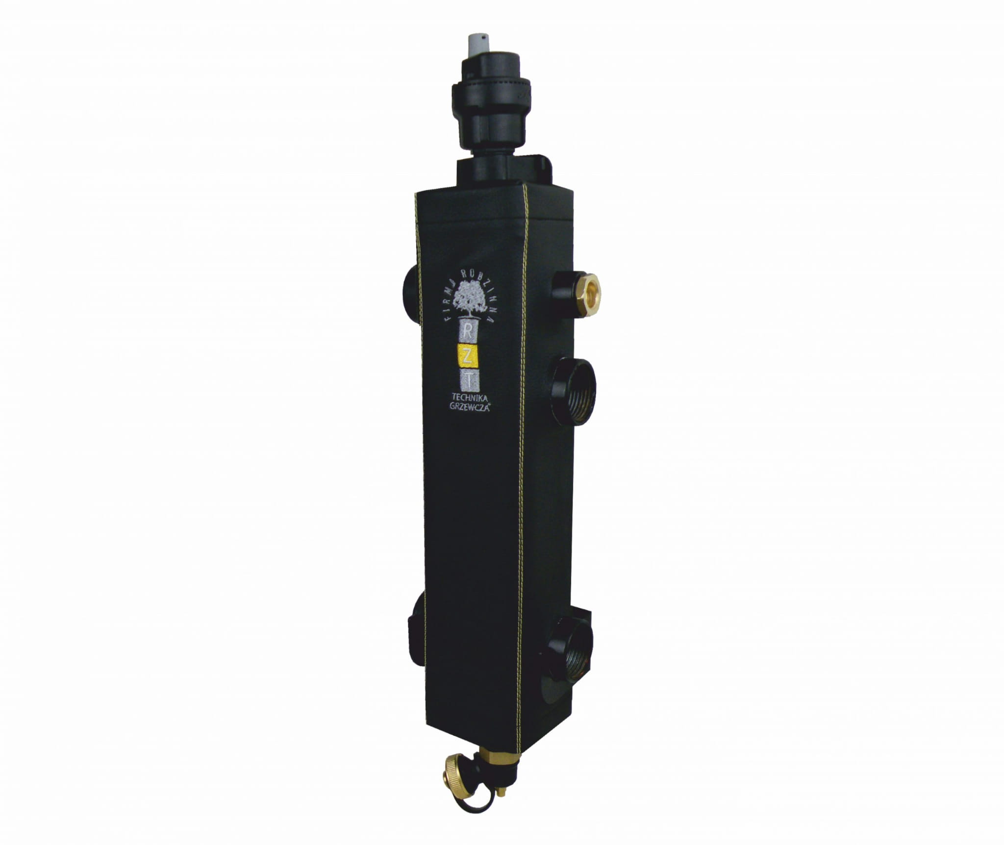 Sprzęgło hydrauliczne ma za zadanie połączenie obiegów kotłowego i grzewczego, dzięki temu możemy połączyć ze sobą kilka urządzeń grzewczych. Sprzęgło hydrauliczne SHR posiada przyłącze gwintowane, ocieplone jest pianką i dodatkowo zabezpieczone pokrowcem, dzięki czemu mamy kontrolę nad oddawanym ciepłem. W zestawie znajduje się osłona czujnika temperatury oraz wspornik znacznie ułatwiający montaż urządzenia. Sprzęgło to występuje w trzech wersjach: bez osprzętu, z osprzętem polimerowym lub z osprzętem mosiężnym. Osprzęt składa się z odpowietrznika automatycznego (polimerowego lub mosiężnego), który usuwa nam powietrze z układu oraz zaworu grzybkowego spustowo-obrotowego (polimerowy lub mosiężny), dzięki któremu eliminujemy możliwość zanieczyszczenia, a dzięki swojej budowie możemy go ustawić w dowolnym dla nas kierunku.