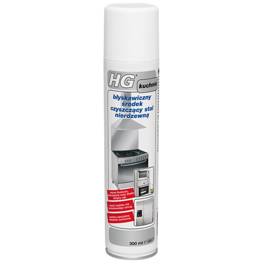 Silny i profesjonalny środek do czyszczenia stali nierdzewnej może być również stosowany w przypadku chromu lub aluminium i idealnie sprawdza się przy czyszczeniu płyt kuchennych, paneli kuchennych, okapów, lodówek, piekarników, kuchenek mikrofalowych itd. Środek do czyszczenia stali nierdzewnej tworzy ochronną warstwę, ułatwiając usuwanie brudu w przyszłości. W celu uzyskania optymalnego połysku polecamy stosowanie produktu HG szybki połysk – stal nierdzewna.