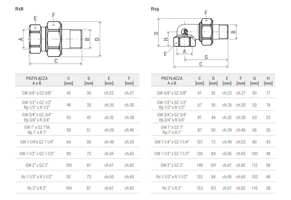 R18 Śrubunek prosty nakrętno-wkrętny połączenia stożek-teflon