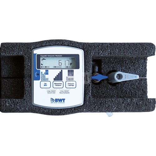 BWT AQA therm HES zainstalowany bezpośrednio po BWT AQA therm HFB składa się z wodomierza, punktu dokowania dla wkładów zmiękczających BWT AQA therm HRC lub wkładów do odsalania BWT AQA therm SRC, zintegrowanego kulowego zaworu odcinającego i punktu napełniania wodą destylowaną (uwaga: woda niezdatna do picia). Służy również do rejestrowania objętości płukania, napełniania i uzupełniania.
