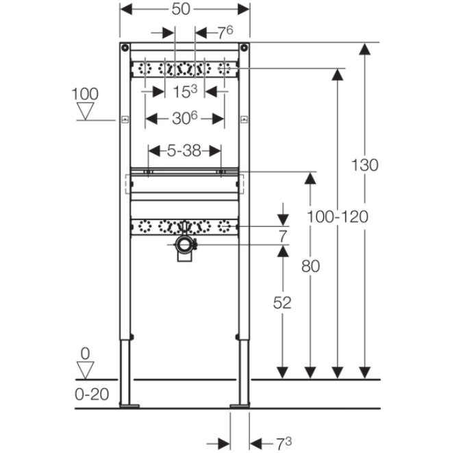 Głębokość stóp odpowiednia do montażu w profilach U UW 50 i UW 75 oraz szynach systemowych Geberit Duofix