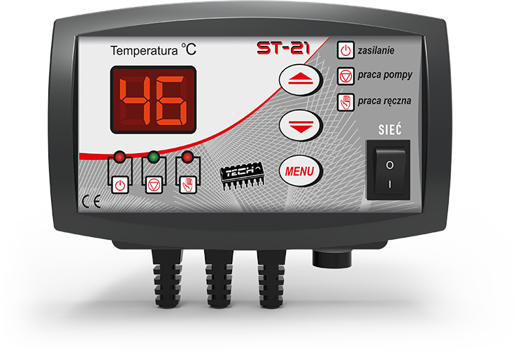 Regulator ST-21 z wyświetlaczem LED przeznaczony jest do sterowania pompą obiegu wody centralnego ogrzewania. Zadaniem regulatora jest załączanie pompy, gdy temperatura uzyska zadaną wartość oraz wyłączanie jej – jeśli kocioł wychłodzi się poniżej zadanej o wartość ustawionej histerezy.