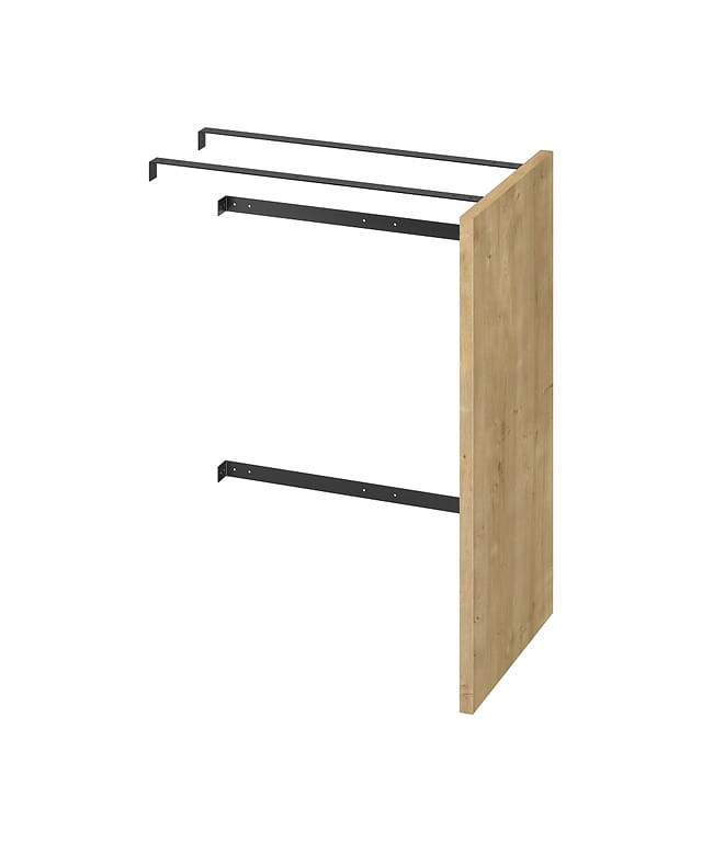 Szafka do zabudowy pralki bez drzwi idealnie wkomponuje sprzęt AGD w ogólny wystrój wnętrza pokazując jedynie jego front. Szafka została wykonana z płyty wiórowej w kolorze dębu.