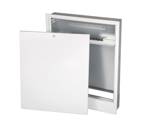 Szafka instalacyjna podtynkowa przeznaczona jest do montażu rozdzielaczy ogrzewania podłogowego bez lub z mieszaczami pompowymi. Szafka skutecznie osłania i oddziela listwę sterującą od rozdzielacza oraz zabezpiecza przewody przed przecięciem lub wyrwaniem.