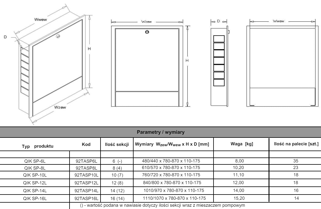 Szafka podtynkowa QIK SP-16/10 do rozdzielacza 16 obiegów 92TASP16L