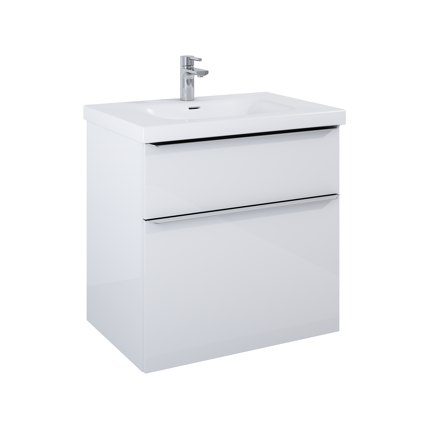Szafka podumywalkowa Lofty 70 cm, 2 szuflady z funkcją cichego samodomyku oraz z pełnym wysuwem. Pierwsza szuflada zaopatrzona w organizer. Szafka wykonana z materiałów wysokiej jakości, front i korpus z płyty laminowanej, lakierowanej na wysoki połysk. Uchwyty metalowe w kolorze chrom połysk.