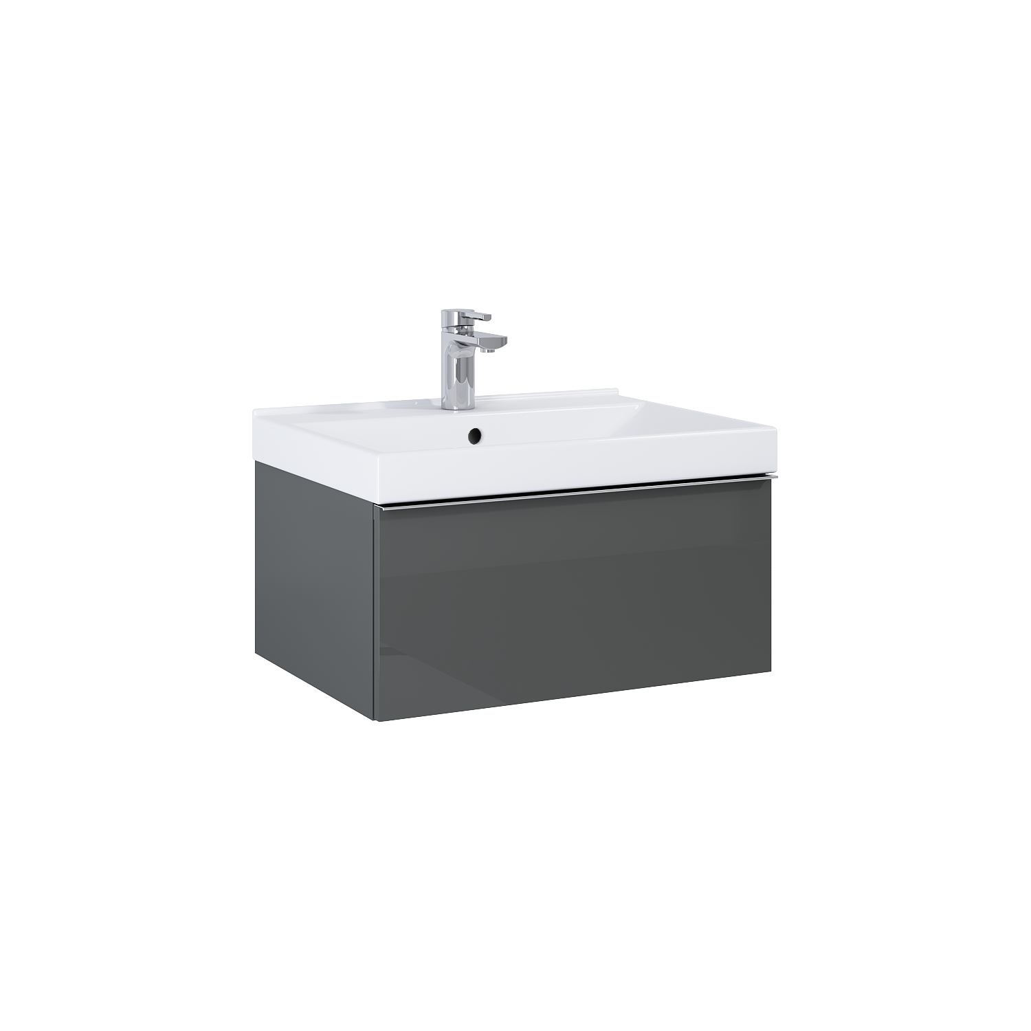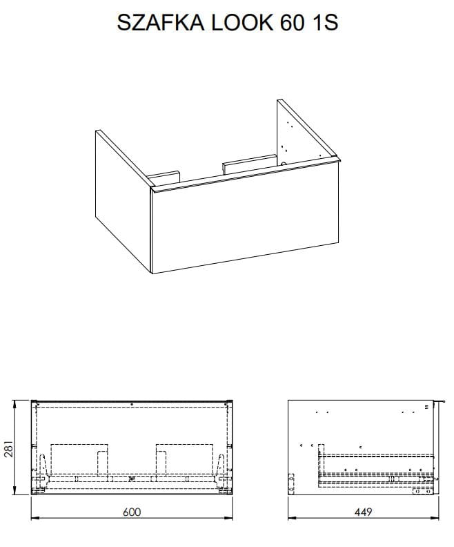 Szafka podumywalkowa Look 60 cm anthracite, bez blatu, 1 szuflada z funkcją cichego samodomyku oraz z pełnym wysuwem, wyposażona w organizer. Szafka wykonana z materiałów odpornych na działanie wilgoci, front i korpus lakierowany, uchwyty metalowe w kolorze chrom połysk. Szafka przygotowana do łączenia z umywalką lub blatem.