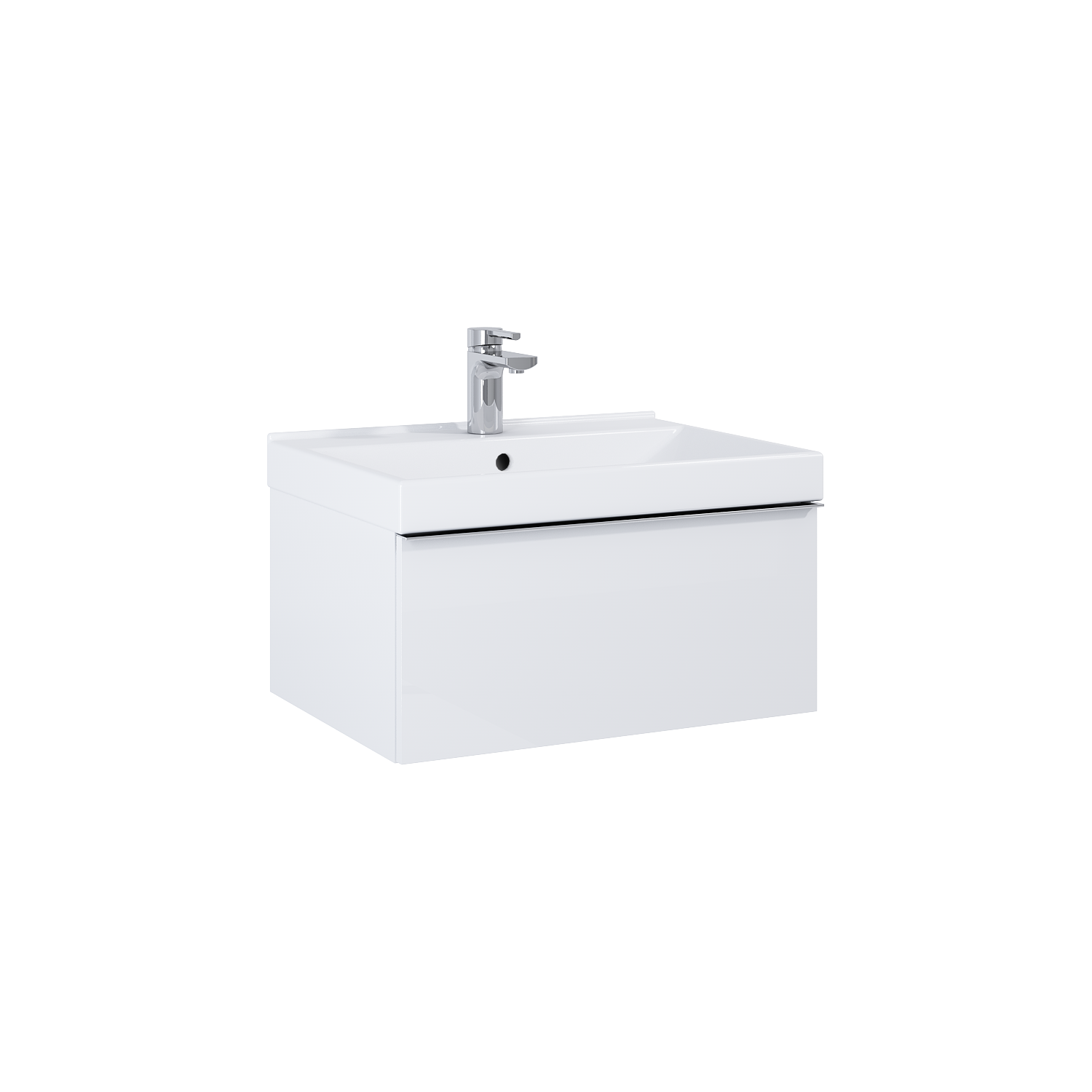 Szafka podumywalkowa Look 60 cm white, bez blatu, 1 szuflada z funkcją cichego samodomyku oraz z pełnym wysuwem, wyposażona w organizer. Szafka wykonana z materiałów odpornych na działanie wilgoci, front i korpus lakierowany, uchwyty metalowe w kolorze chrom połysk. Szafka przygotowana do łączenia z umywalką lub blatem.