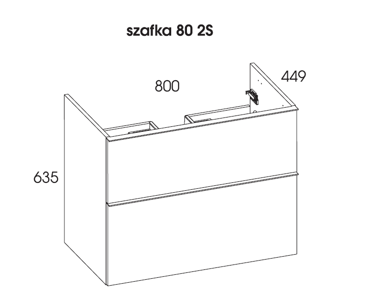 Szafka podumywalkowa Look 800 cm anthracite, bez blatu, 2 szuflady z funkcją cichego samodomyku oraz z pełnym wysuwem. Szafka wykonana z materiałów odpornych na działanie wilgoci, front i korpus lakierowany, uchwyty metalowe w kolorze chrom połysk. Szafka przygotowana do łączenia z umywalką lub blatem.