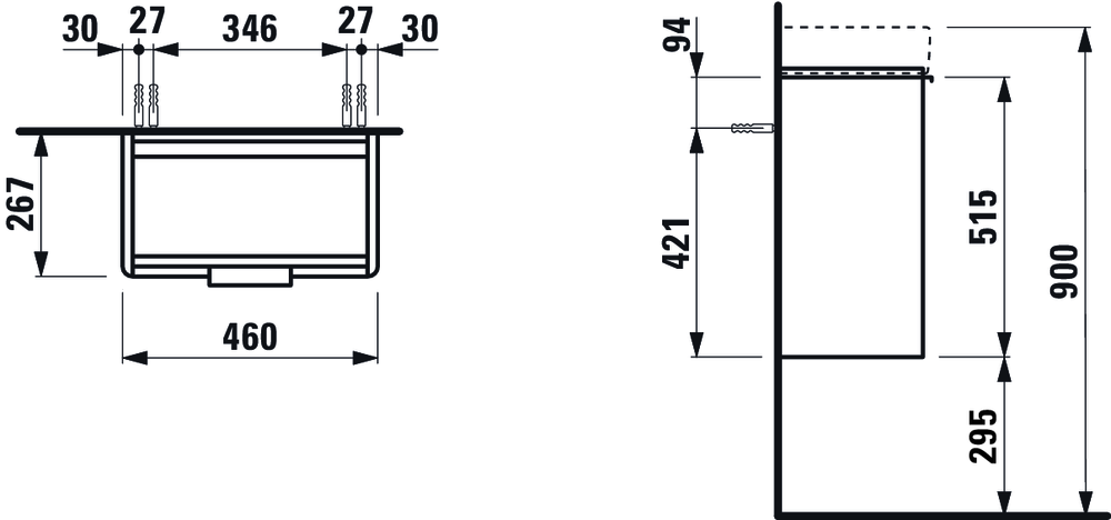 Laufen Base szafka z drzwiami do umywalki H815954, wersja prawa