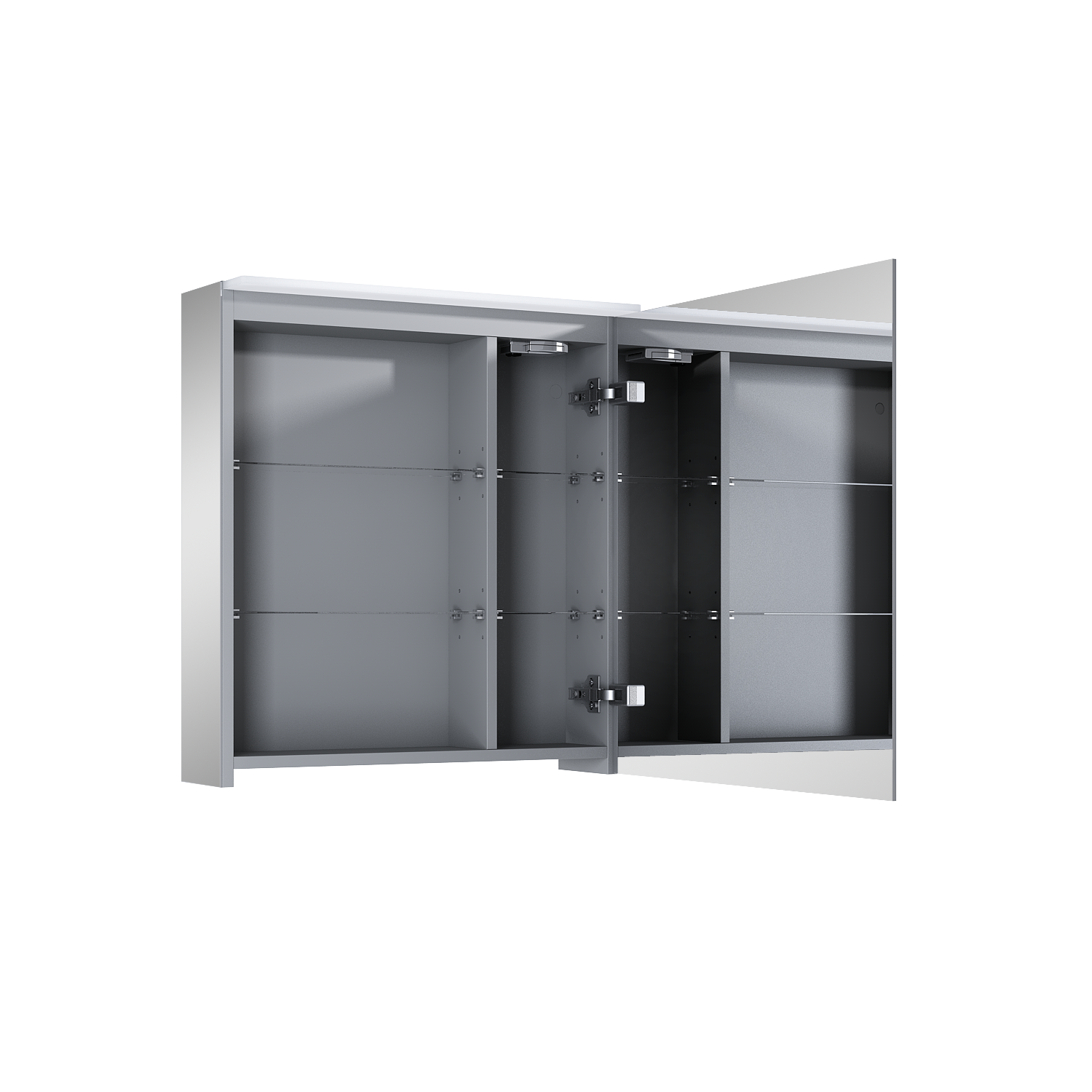 - Wnętrze szafki w eleganckim szarym kolorze