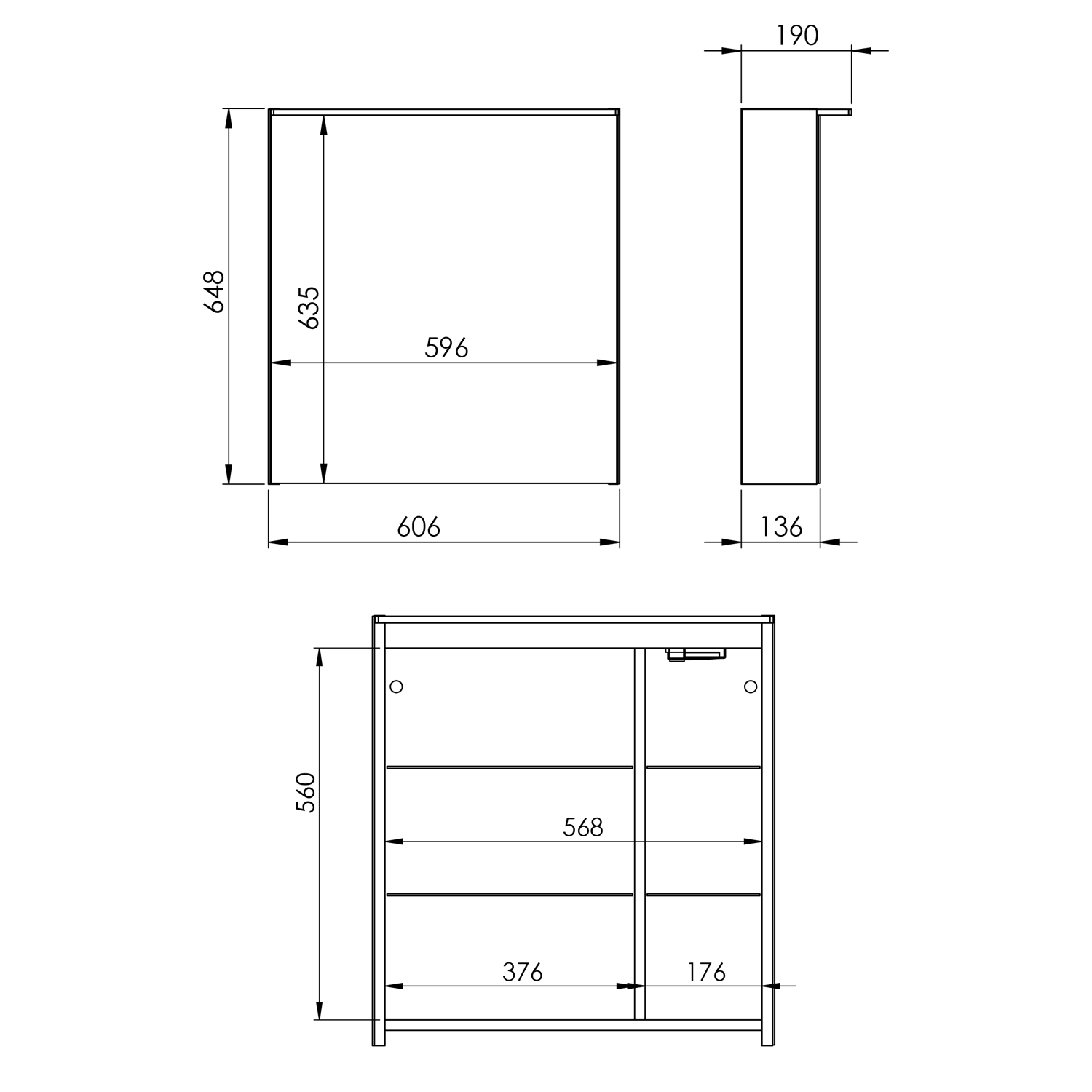 - Szafka wyposażona w 2 szklane półki z regulowaną wysokością oraz technobox