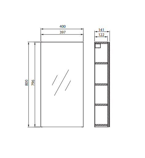 Szafka wisząca z lustrzanym frontem i 3 półkami wewnątrz, która spełni funkcję lustra oraz miejsca do przechowywania drobnych kosmetyków. Szafka posiada bezuchwytowy system otwierania drzwi oraz ciche domykanie "soft close". Korpus szafki został wykonany z płyty wiórowej laminowanej.