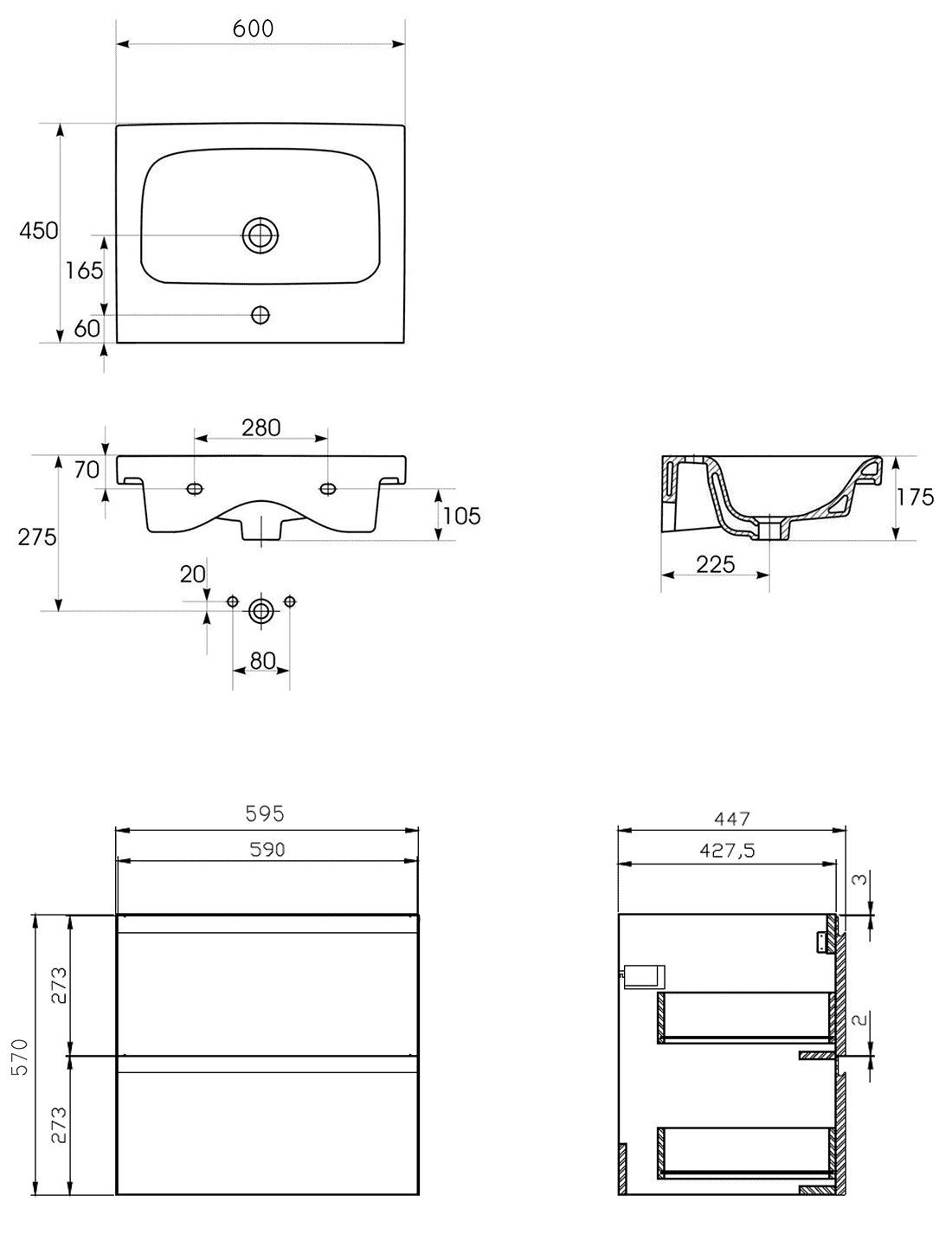 - wymiary umywalki: 60 x 45 cm