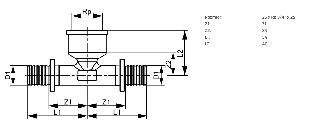 - Rozmiar: 25 x Rp 3/4" x 25 mm