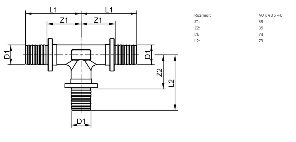 Trójnik TECE Flex 40x40x40 z mosiądzu standard 760040