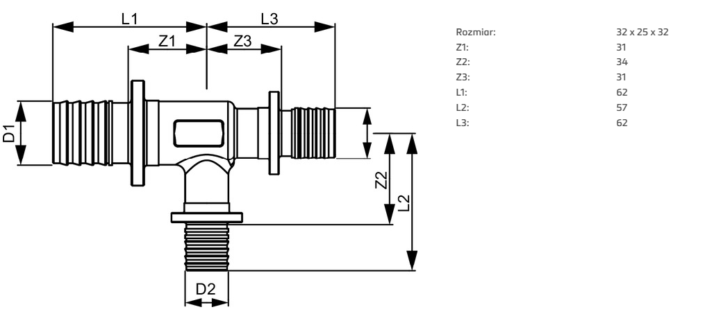 Trójnik redukcyjny TECE Flex 32x25x32 z mosiądzu standard 760523