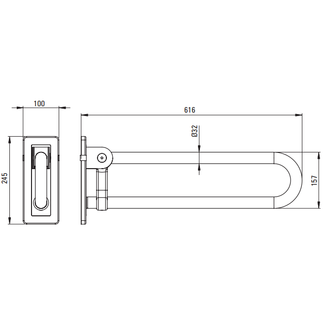 Uchwyt składany przyścienny o długości 60 cm. Produkt wykonany jest ze stali nierdzewnej. Wyposażony został w mechanizm uchylny w kolorze antracytowym. W komplecie zestaw montażowy do twardego podłoża (ściany z pełnej cegły/ betonu). Maksymalny udźwig uchwytu 150 kg. Produkt jest wyrobem medycznym.
