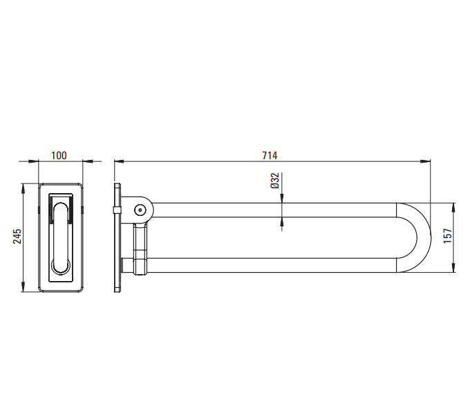 Uchwyt składany przyścienny ma długości 70 cm. Wykonany został z wysokogatunkowej stali nierdzewnej. Uchwyt wyposażony jest w mechanizm uchylny w kolorze antracytowym. W komplecie zestaw montażowy do twardego podłoża (ściany z pełnej cegły/ betonu). Maksymalny udźwig 150 kg. Produkt jest wyrobem medycznym.