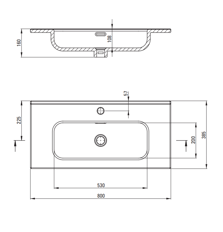 Tubo Umywalka ceramiczna wpuszczana z miejscem na baterię - 80 cm
