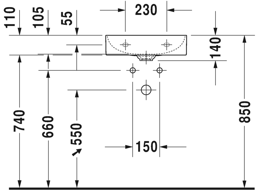 Umywalka DURAVIT DURASQUARE 45x35cm, bez otworu, bez przelewu, biała 0732450070