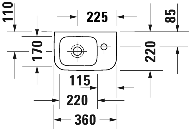 Umywalka DURAVIT DURASTYLE 36x22cm, prawa, bez przelewu, biała 0713360000