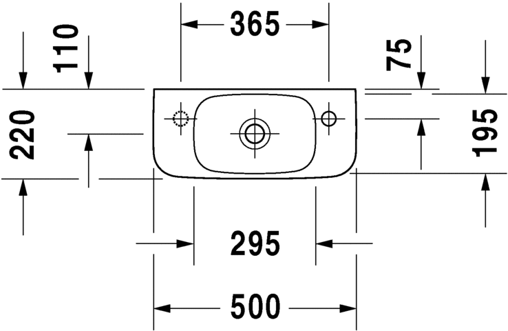 Umywalka DURAVIT DURASTYLE 50x22cm, prawa, bez przelewu, biała 0713500008