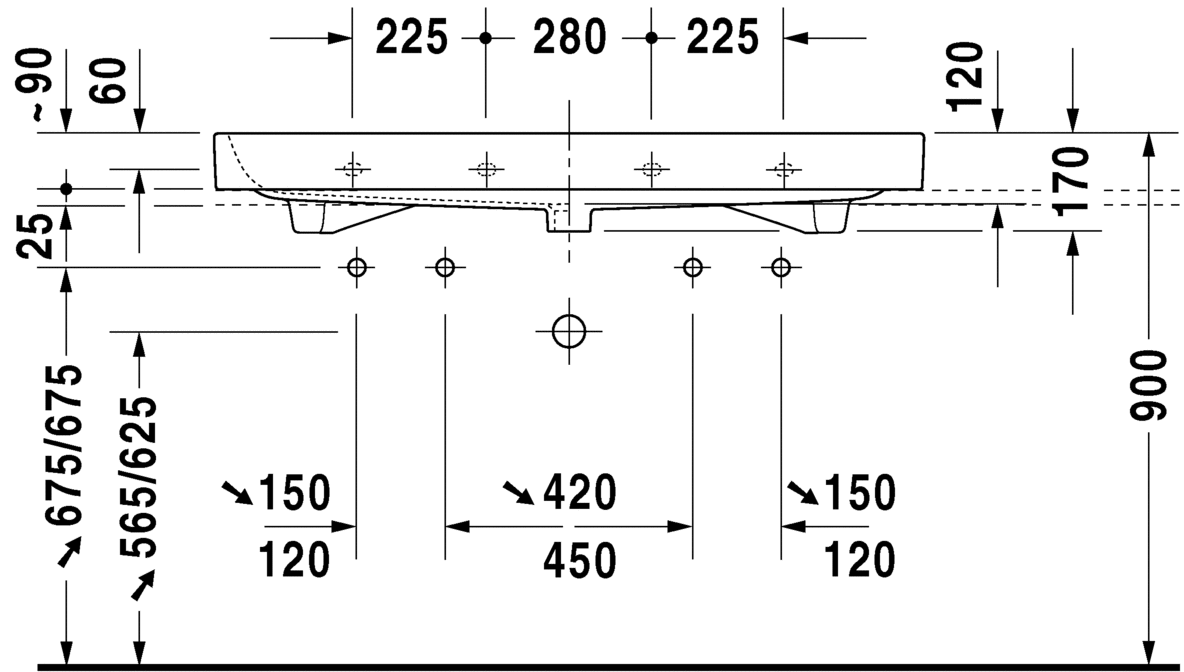 Umywalka DURAVIT HAPPY D.2 120x50,5cm, WonderGliss, biała 23181200261
