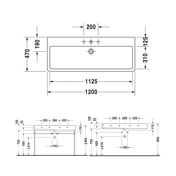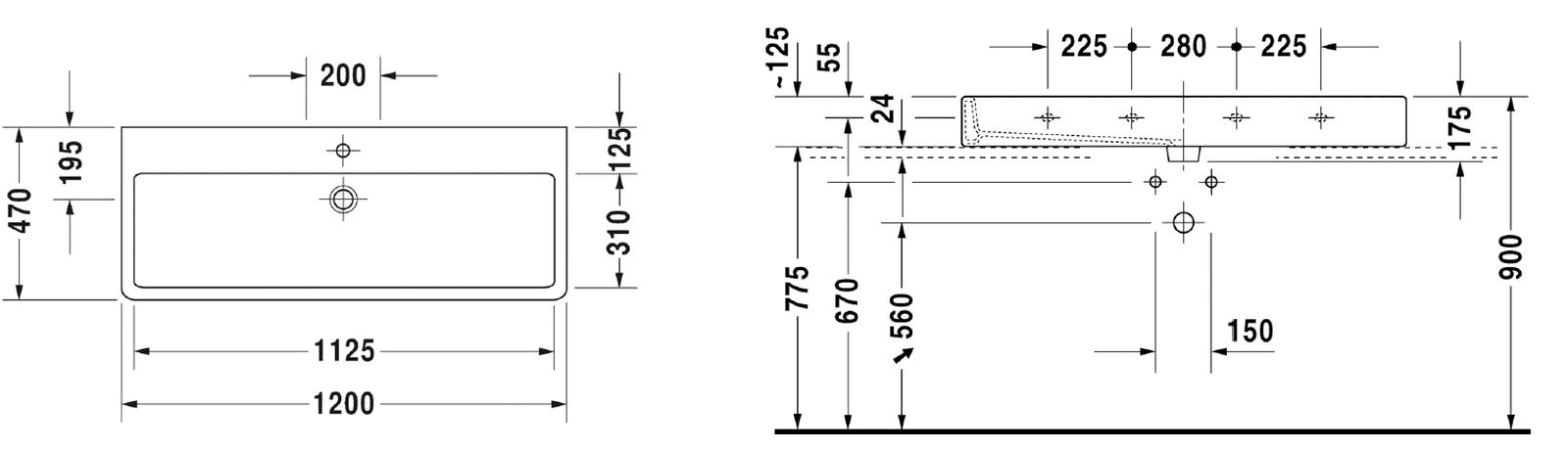 Umywalka DURAVIT VERO 120x47cm, 1-otworowa, szlifowana, biała 0454120027