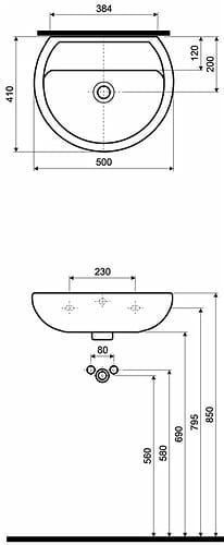Umywalka KOŁO REKORD 50×41cm, bez otworu, biała K91050000
