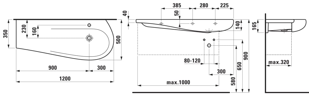 Umywalka LAUFEN ILBAGNOALESSI ONE 120x50cm, lewa, biała H8149744001041
