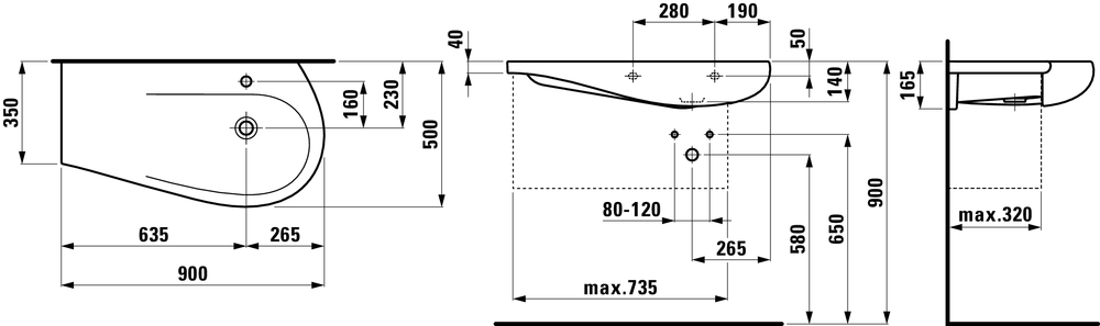 Umywalka LAUFEN ILBAGNOALESSI ONE ONE 90x50 z otworem, blat po lewej stronie H8149764001041