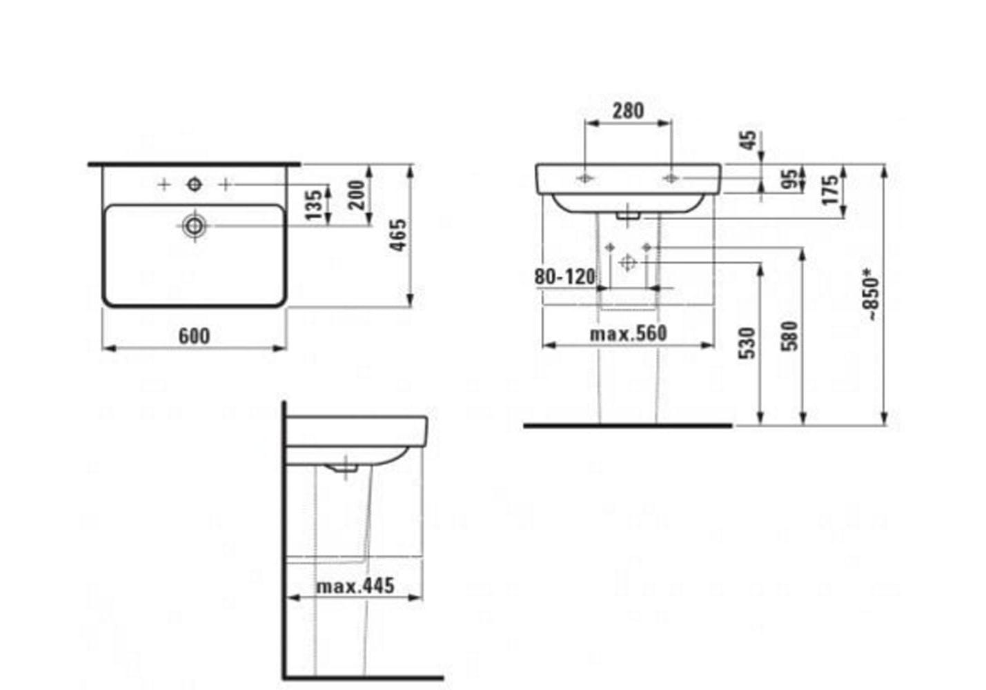 umywalka ścienna 600 x 465 mm