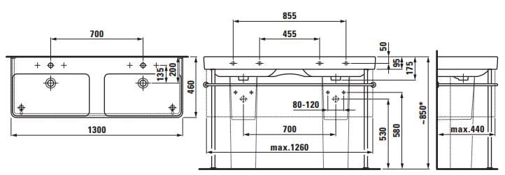 Umywalka LAUFEN PRO S 130x46cm, podwójna, biała H8149680001041