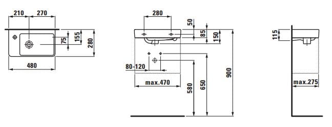 Umywalka LAUFEN PRO S 48x28 otwór po lewej, biała H8159550001041