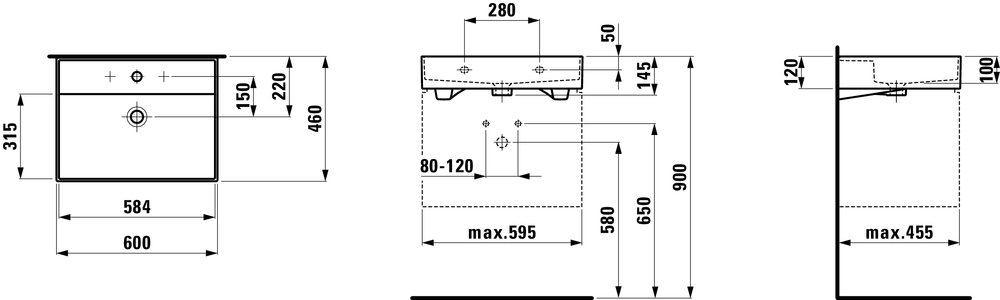 Umywalka Ścienna KARTELL BY LAUFEN BY 600x460mm SaphirKeramik, biały H8103330001041