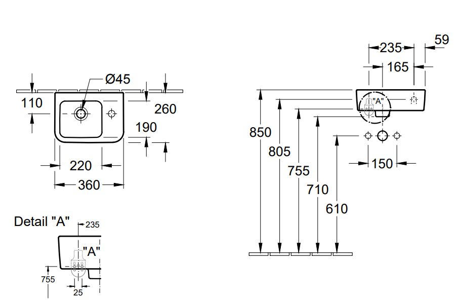 - Zakres dostawy: 1 x umywalka mała, 1 x zestaw mocujący