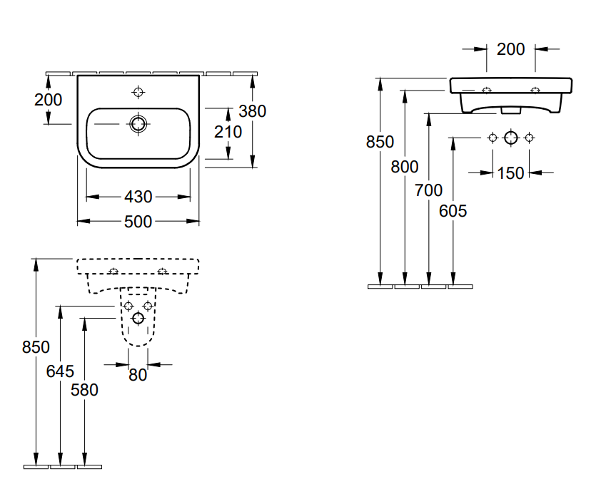 Architectura Umywalka mała 500 x 380 x 150 mm, Weiss Alpin, z przelewem, Nieszlifowany