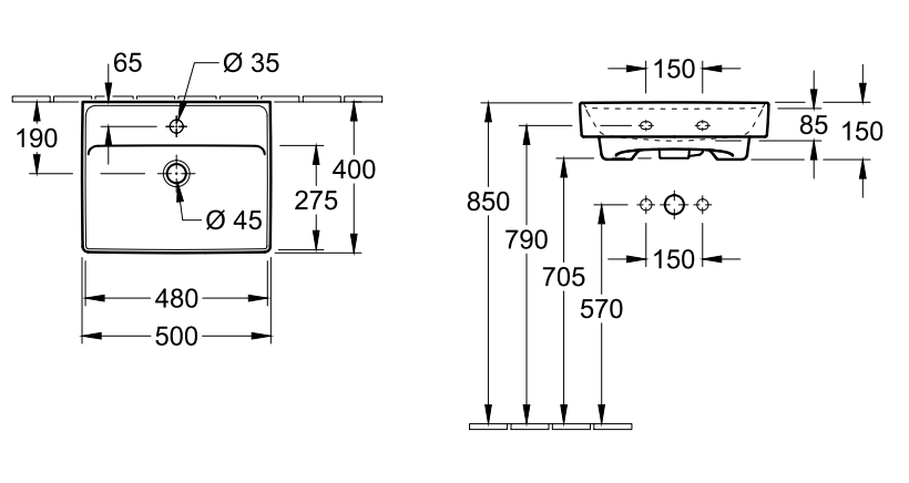 Collaro Umywalka mała 500 x 400 x 150 mm, Weiss Alpin, bez przelewu, Nieszlifowany