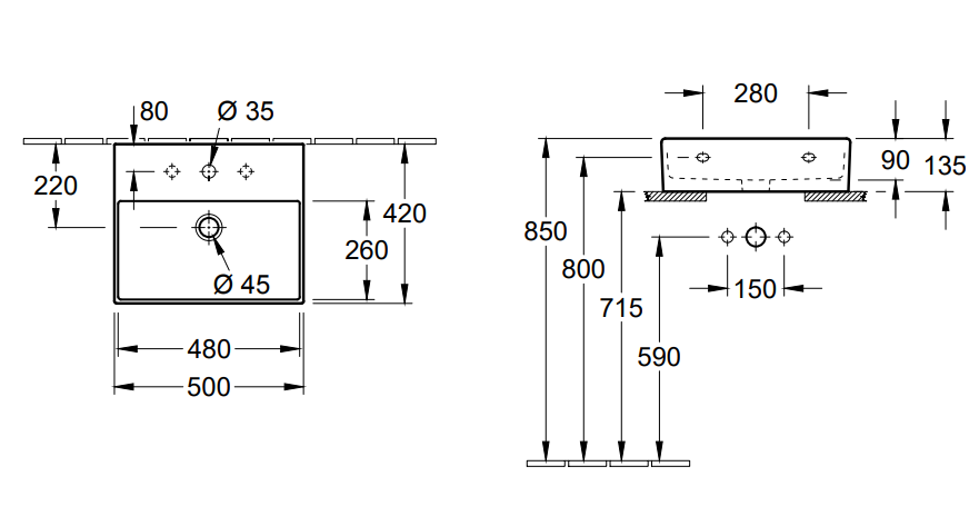 Umywalka VILLEROY&BOCH MEMENTO 2.0 50x42cm, szlifowana, bez przelewu, CeramicPlus, biała 4A225LR1